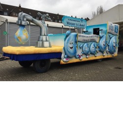 Grundfos nimmt zum ersten Mal mit einem eigenen Motivwagen am Rosenmontagszug in Düsseldorf teil. Er thematisiert das Motto „Wasser is Läwe“ (Wasser ist Leben).