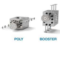 Um den Forderungen nach mehr Effizienz, höherem Durchsatz und reduzierten Ausschussraten Rechnung zu tragen, hat Witte Pumps eine komplette Überarbeitung ihres Polymerpumpen-programms vorgenommen. Im Hinblick auf mehr Durchsatz, schonendere Förderung und höhere Energieeffizienz sind sowohl die Pumpen der Booster- als auch der Poly-Baureihe komplett überarbeitet worden. Das Resultat ist ein Redesign, das sich auf alle Kernkomponenten auswirkt. Sowohl Gleitlager als auch Gehäuse und Zahnradwellen wurden angepasst. Aus technischer Sicht ergeben sich daraus wesentliche Vorteile, was Fördereigenschaften und Produktqualitäten angeht. Die bessere Produktqualität wird durch einen reduzierten Wärmeeintrag, geringere Scherung und verkürzte Verweilzeiten des Polymers im Schmelzereaktor erreicht. Deutlich höhere Durchsätze als mit Pumpen desselben Footprints im bisherigen Design lassen sich durch die optimierten Zahnradwellen und die angepasste Gehäusegeometrie erreichen. Steigerungen bis zu 40 % bei gleicher Einbaugröße sind hierbei möglich.