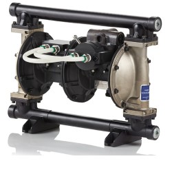 Die Hochdruck- Druckluftmembranpumpe Verderair VA 25 HP von Verder Deutschland ist eine 2:1-druckübersetzte Hochdruckmembranpumpe. An der Pumpe können zwei Betriebsarten gewählt werden. Im Standardbetrieb arbeitet die Pumpe im normalen Druckbereich mit maximal 189 l/min und 8,6 bar. Im Hochdruckbetrieb erreicht sie 174 l/min bei maximal 17,2 bar. Hochdruck-Druckluftmembranpumpen werden überall dort gebraucht, wo der benötigte Förderdruck höher ist als der Steuerluftdruck. Typisch ist das im Bereich der Kammerfilterpressen, der keramischen Industrie oder wenn ein hoher Arbeitsdruck benötigt wird sowie bei langen Distanzen. Die clevere Konstruktion ermöglicht einen wirtschaftlichen Umgang mit Druckluft. Im Beispiel der Kammerfilterpressen reicht zunächst der reguläre Druck aus. Im Laufe des Prozesses kommt es zur Aufkonzentration des Filterkuchens vor den Kammern. Nun wird mehr Druck benötigt, um die gleiche Fördermenge durch die Kammern zu pressen. Schaltet man nun um, bleibt die Förderleistung nahezu stabil. Denn auch im Hochdruckbetrieb mit 17,2 bar erreicht die Pumpe 174 l/min. Realisiert wird das mittels einer weiteren Membran und Druckluftkammer, die zu- und abgeschaltet wird. Im Normalbetrieb zirkuliert die Druckluft in der abgeschalteten Kammer und wird nicht verbraucht.