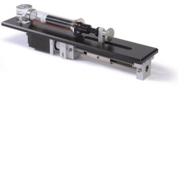 Die neue OEM Einbau-Spritzenpumpe Precision-SY wurde von Spetec speziell für den Einsatz in Geräten entwickelt, um Proben oder Reagenzien im Micro- und Nanoliterbereich in hoher Präzision einzubringen. Beispiele für die Anwendungen sind das Auftragen von Reagenzien, Abfüllen von Mikrovolumina, Dosieren von Klebern oder Injektion von Proben in der analytischen und klinischen Chemie. Die Einbau-Spritzenpumpe wird individuell auf die Erfordernisse des Analysengerätes abgestimmt, das heißt Form und Farbe der Montageplatte werden jeweils nach Kundenwunsch angepasst. Es gibt also keine Serie in dem Sinn, sondern die Kunden können ein maßgeschneidertes Produkt definieren, das genau zu ihrem Gerät passt. Kernelemente sind Schrittmotor, Spindel, Linearführung, Spritzenhalter und austauschbare Spritzen. Durch die hohe Auflösung des Schrittmotors von 25.600 Schritten pro Umdrehung sind Einzelschritte im Bewegungsablauf praktisch nicht wahrnehmbar. Ein Verbindungsteil, welches die Spindel mit dem Spritzenstempel starr verbindet, überträgt die Antriebskraft des Schrittmotors und sorgt damit für den Vorschub, also für die Befüllung oder die Entleerung der Spritze. Es werden Dosierspritzen mit einem Volumen von 0,05 bis 10 ml eingesetzt.