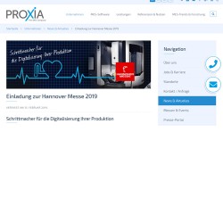 Proxia präsentiert sich auf der diesjährigen Hannover Messe unter dem Motto: Schrittmacher für die Digitalisierung der Produktion.