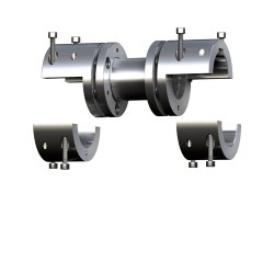 KTR hat eine Stahllamellenkupplung entwickelt, die als Gesamteinheit radial montiert und demontiert wird. Die Rigiflex-N Bauart A-H ist in allen wesentlichen Punkten nach API 610 und 671 konstruiert und erhältlich in sechs Baugrößen für Nenndrehmomente bis 2.400 Nm. Haupteinsatzgebiete sind Pumpenanwendungen in der Prozess und Chemieindustrie. Diese Kupplung besteht aus zwei Naben, einem Zwischenstück und zwei Lamellenpaketen, die bereits werksseitig als eine Baugruppe montiert werden. Die Naben der Stahllamellenkupplung sind als Halbschalen ausgeführt – das ermöglicht den radialen Ein- und Ausbau der gesamten Kupplung als Einheit. Montiert werden die beiden Halbschalennaben mit jeweils vier Klemmschrauben. Die Lamellen sind formschlüssig mit Naben und Zwischenstück verbunden.