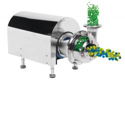 Die Scherung entsteht zwischen dem Rotor und dem perforierten, patentierten Stator. Dieser verfügt über einzigartig geformte Scherspalten und reduziert die Partikelgröße auf bis zu 1,4 bis 2 µm und erreicht eine Scherrate von 40.000 s-1. Die neue Dispergierpumpe ist mit offenem und geschlossenem Laufrad lieferbar und erreicht Fördermengen bis zu 200 m³/h bei 5 bar.