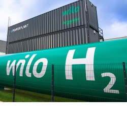 Die H2 Powerplant setzt aus Sonne, Wind und Wasser erzeugten Strom mittels Elektrolyse in grünen Wasserstoff um. Bei Bedarf lässt sich der Wasserstoff über eine Brennstoffzelle in elektrische Energie rückumwandeln. Die Abwärme wird dabei im Verbundsystem zum Heizen genutzt oder gespeichert oder vor Ort in Kälte umgewandelt. Die erste Powerplant entstand im vergangenen Jahr als Pilotanlage auf dem Wilopark, dem Unternehmenshauptsitz der Gruppe. Die Anlage kann in einem 29,8 m langen Tank bis zu 520 kg Wasserstoff speichern.