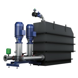 Das Nettotankvolumen ist gemäß der normgeforderten 3%-Regel ausgelegt. Dank der modularen Bauweise kann die Aufstellung und die Installation der Abwasseranschlüsse zeit- sowie kostengünstig erfolgen. Die Notentwässerung des Vorbehälters wird nicht durch die Feuerlöschpumpen übernommen, sondern durch eine separate den Räumlichkeiten vor Ort angepasste Lösung realisiert. Die Nachspeisung erfolgt über eine vom DVGW zugelassene trinkwassergeeignete Zulaufarmatur. Trinkwasser und Löschwasser sind gemäß den Normen DIN EN 1717 und DIN EN 13077 Typ AB hygienisch voneinander getrennt. Das und eine regelmäßige Spülung der Armatur schließen eine Verkeimung des Trinkwassers aus. Ein automatisierter täglicher Funktionslauf erhöht die Betriebssicherheit und sorgt dafür, dass der Betreiber immer über die Einsatzbereitschaft der Anlage informiert ist.